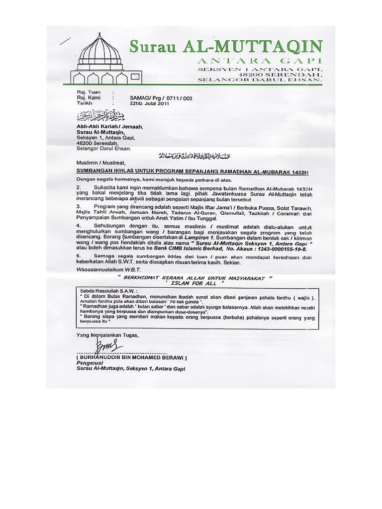 Surat Mohon Sumbangan Untuk Surau Surauterindah